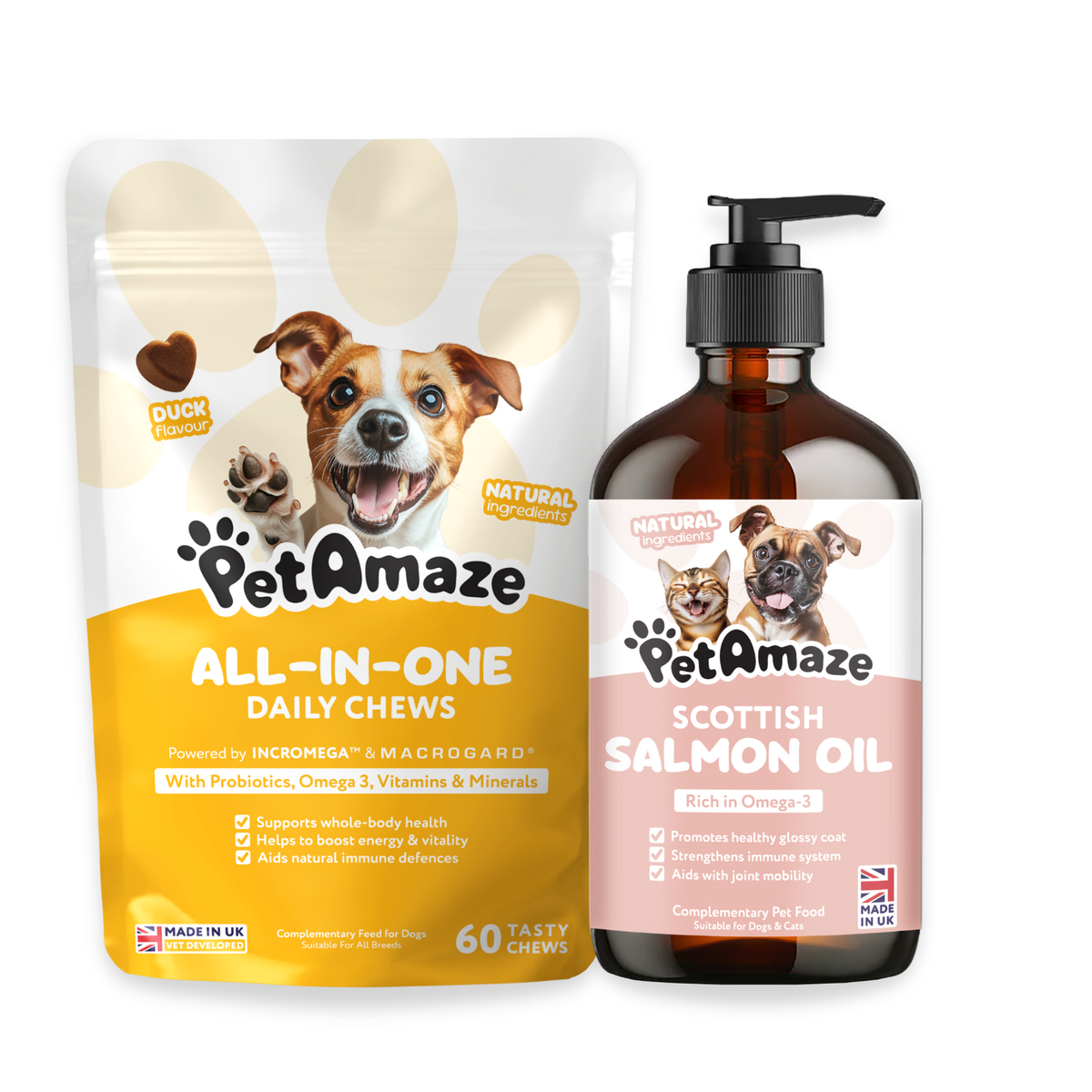 Nutrient-rich All-in-One Daily Chews + Omega-packed Scottish Salmon Oil.