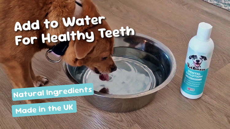 Add 1 tablespoon (15ml) of PetAmaze Dental Water Additive to your dog’s 250ml water bowl daily.